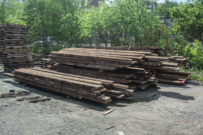 Some of the reclaimed joists measured up to almost 18' feet in length. These timbers will be kiln-dried and resawn into flooring, paneling, and shelving material. Some will be manufactured into table and countertops, with a skip-planed or original face surface on the top.