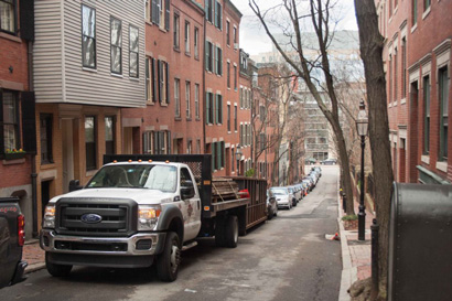 This towering Beacon Hill residence yielded four complete stories of softwood floor joists. Lumber from the building was carefully saved during this gut-rehab project and will be recycled into flooring, tabletops, and wall paneling.