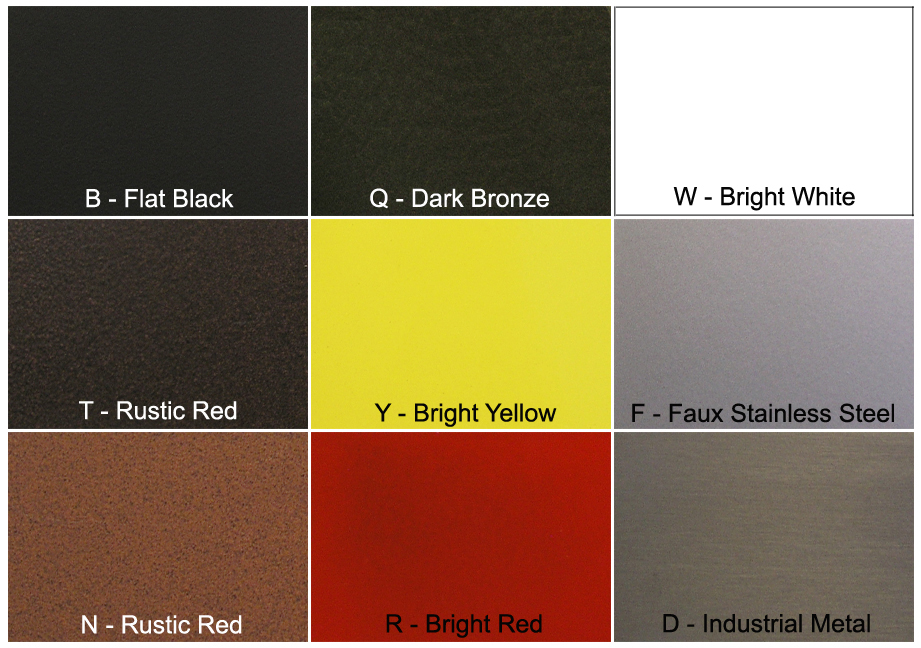 The metal hardware is available in both rough and smooth finishes with flat or rounded wheel carriers. Material choices include iron, stainless steel, or a powder coated finish in a variety of colors. The black iron finish is stocked as a matter of course, meaning mail orders ship in two-three business days. Other, custom finishes ship in approximately six weeks.