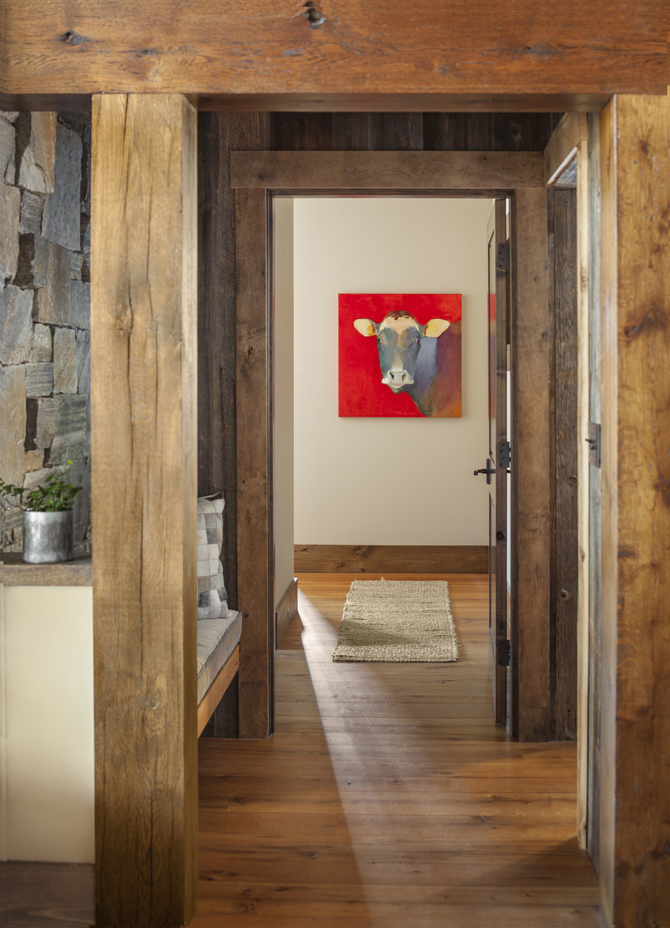 Resawn reclaimed wood beams are often repurposed as architectural details, drawing long, bold lines through commercial and residential spaces. Colors range: Heart Pine often exudes a sweet honey-yellow, red oak a pale flushing red, and American chestnut a light to dark earthy brown.