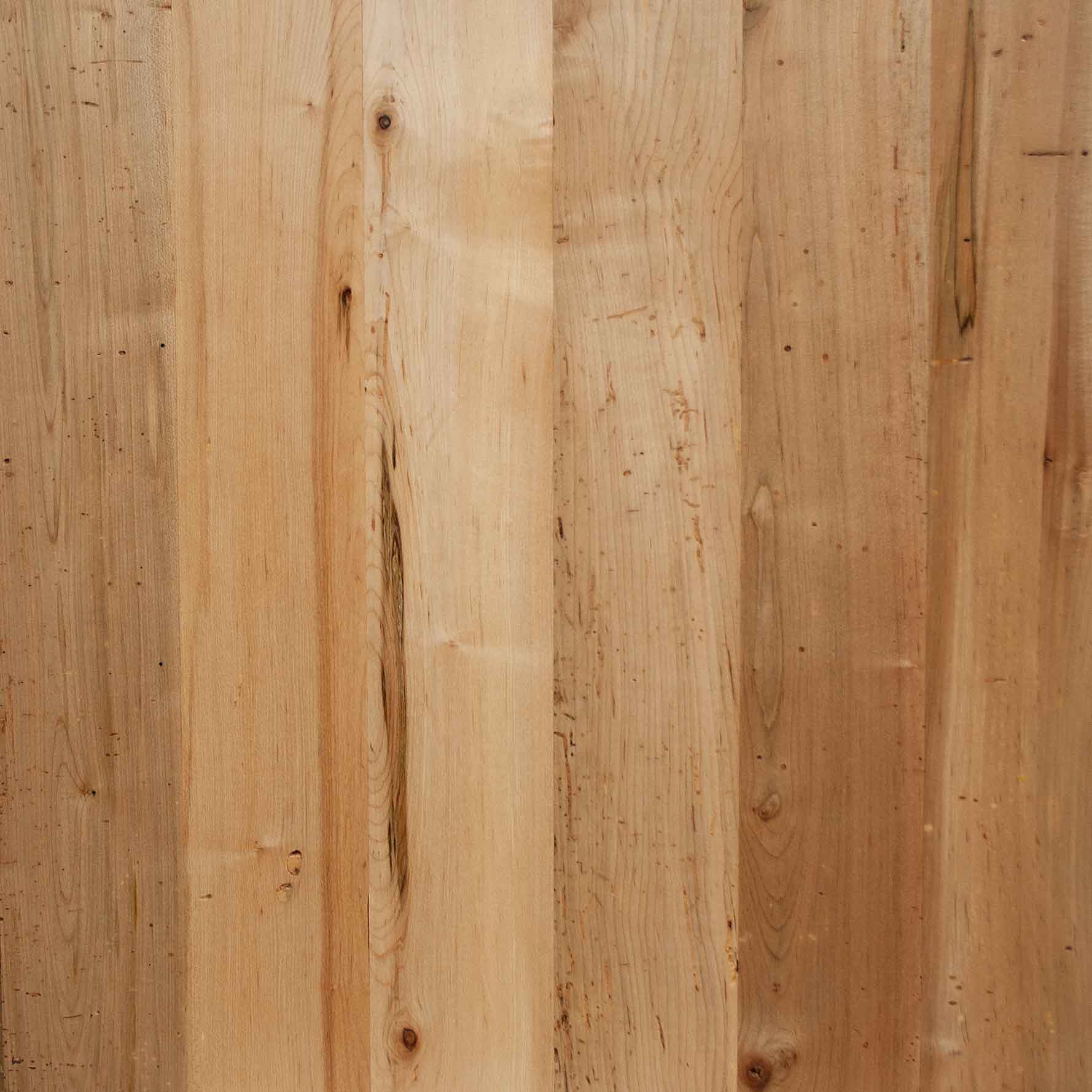 Longleaf mills reclaimed maple flooring in tongue-and-groove style. Maple flooring sometimes includes beech wood. Extra wide plank floorboards can be milled to order.