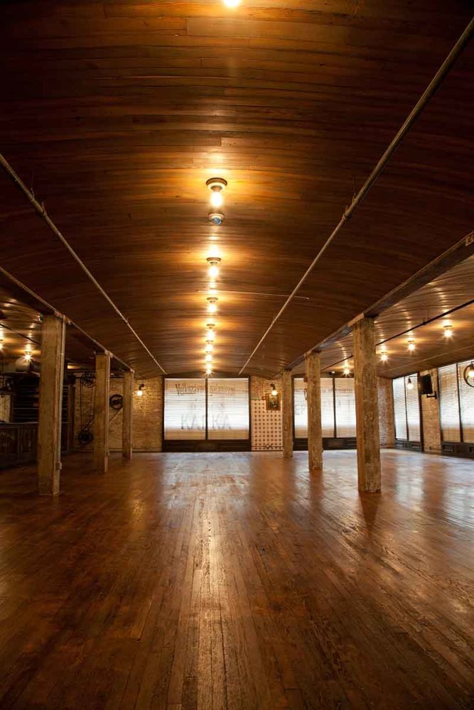 Reclaimed Heart Pine ceiling paneling, custom-milled for a brewery and restaurant space in Hoboken, New Jersey. Single-width boards.