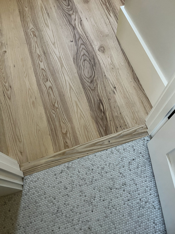 Our Emerald Ash was installed throughout this Boston-area home. Strong, durable, and stable, ash has an interesting grain pattern and neutral tone that pairs nicely with this modern aesthetic.