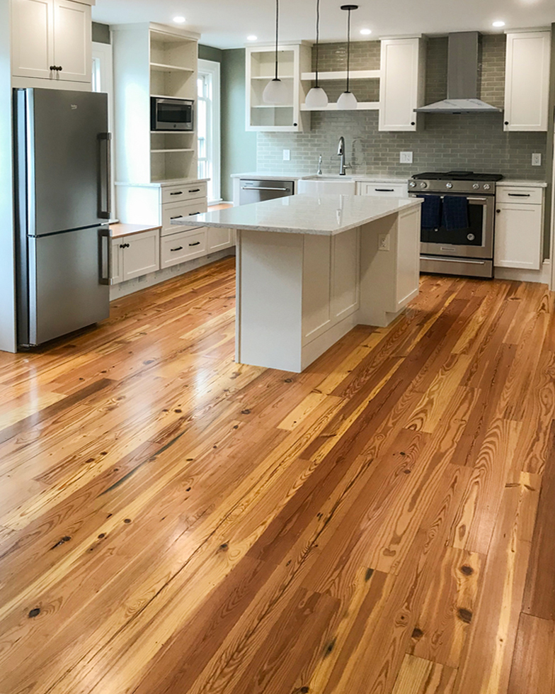 Our Rustic #3 grade Heart Pine flooring looks great in mixed widths. Here’s to the new chapter in history that our Rustic Heart Pine flooring will help write.