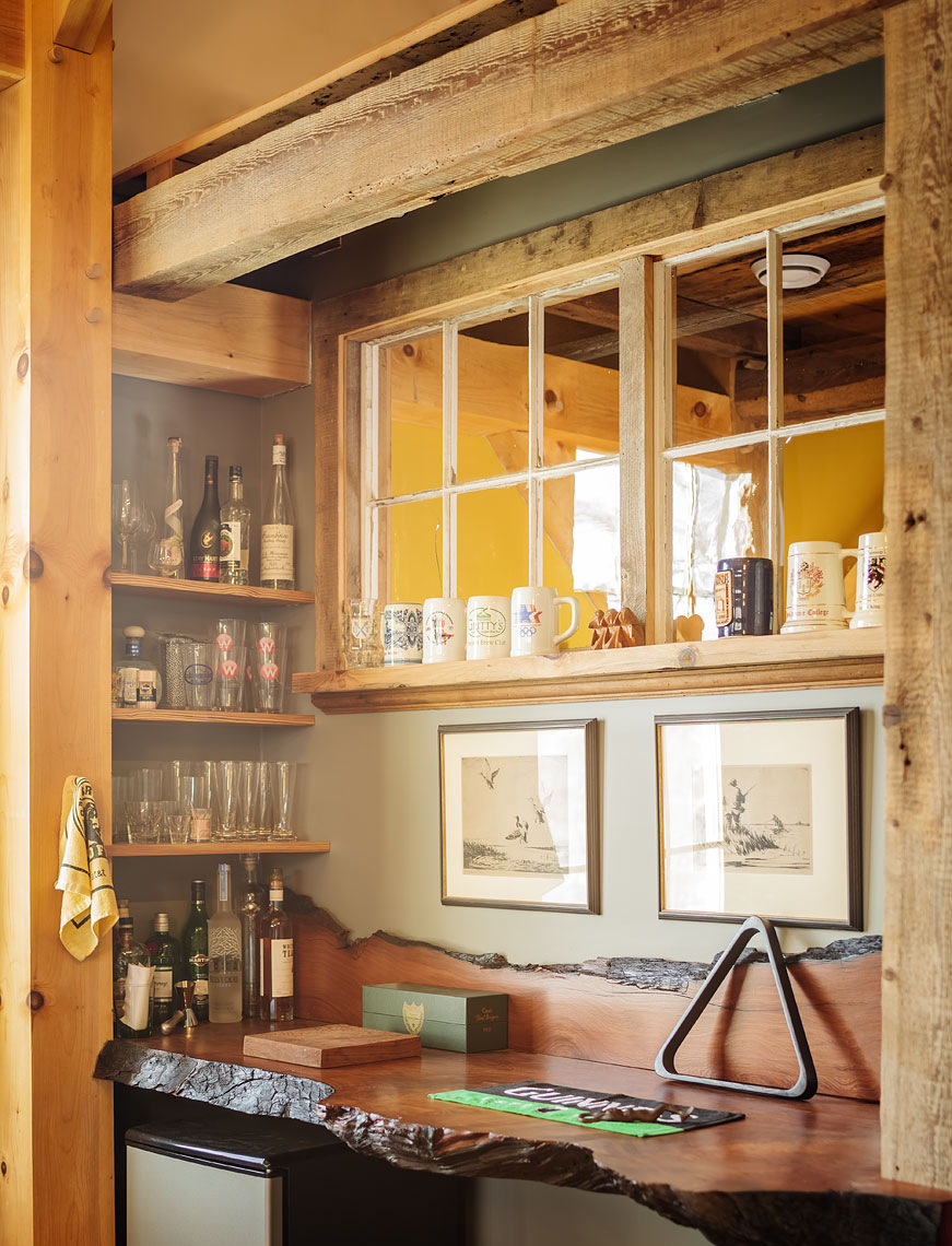 Salvaged Redwood Slab Bartop & Backsplash
