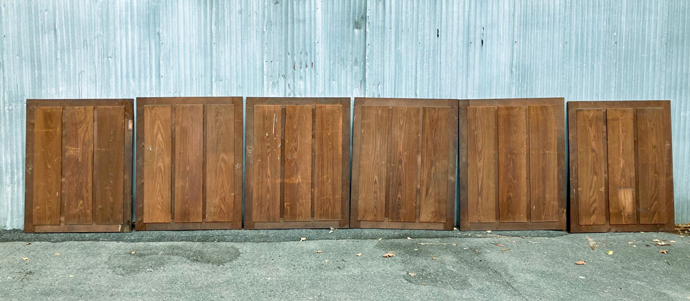 These panels were removed during a recent renovation project. Too cool not to save for a new application, we pulled them aside and have them available now in our Cambridge warehouse. There are six panels with vertical recessed sections.
