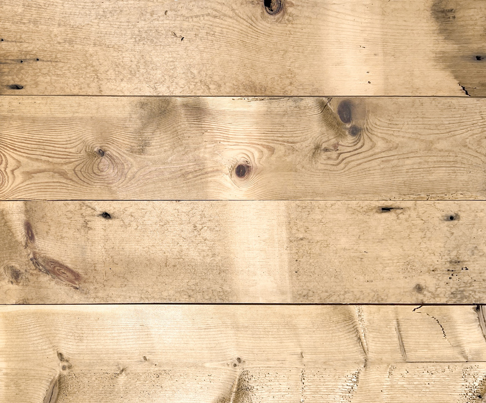 This paneling is a mix of reclaimed Eastern White Pine, hard pine, hemlock, and spruce salvaged from barns and mill buildings. Golden color, occasional nail holes, light checking, and scattered knots make this a bright, rustic paneling reminiscent of industrial loft spaces and casual farm houses.
