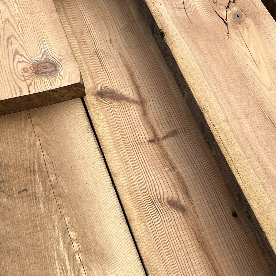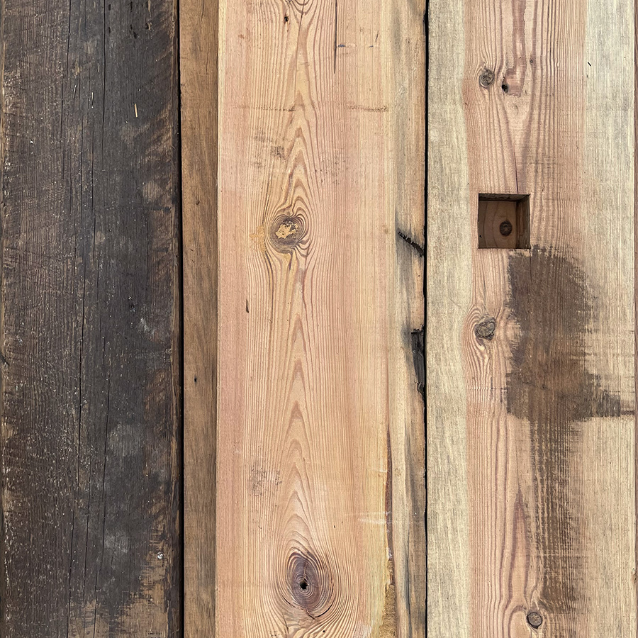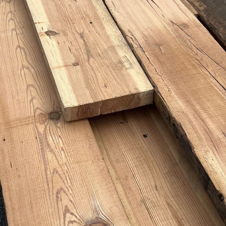 These wide and long salvaged boards have been milled on two faces and are perfect for tables, desks, benches, and counters.